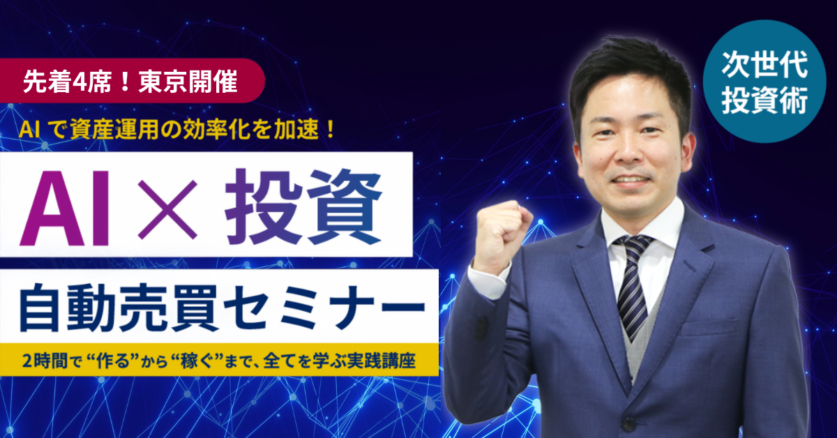 「勝てるトレードが24時間できたら」そう考えたことはありませんか?その実現には自動化が不可欠ですが、自動化のための”プログラミング”と聞くと多くの人が敬遠してしまいます。しかし次世代の投資家は、AIを“優秀なアシスタント”として活用し、その壁を乗り越えています。面倒な作業はAIに任せ、自分は最も重要な「どんなルールで売買させるか」という戦略設計に集中するのです。本セミナーでは、プログラミング未経験者でもAIを使って投資戦略を「システム」として形にする、その全体像を学びます。